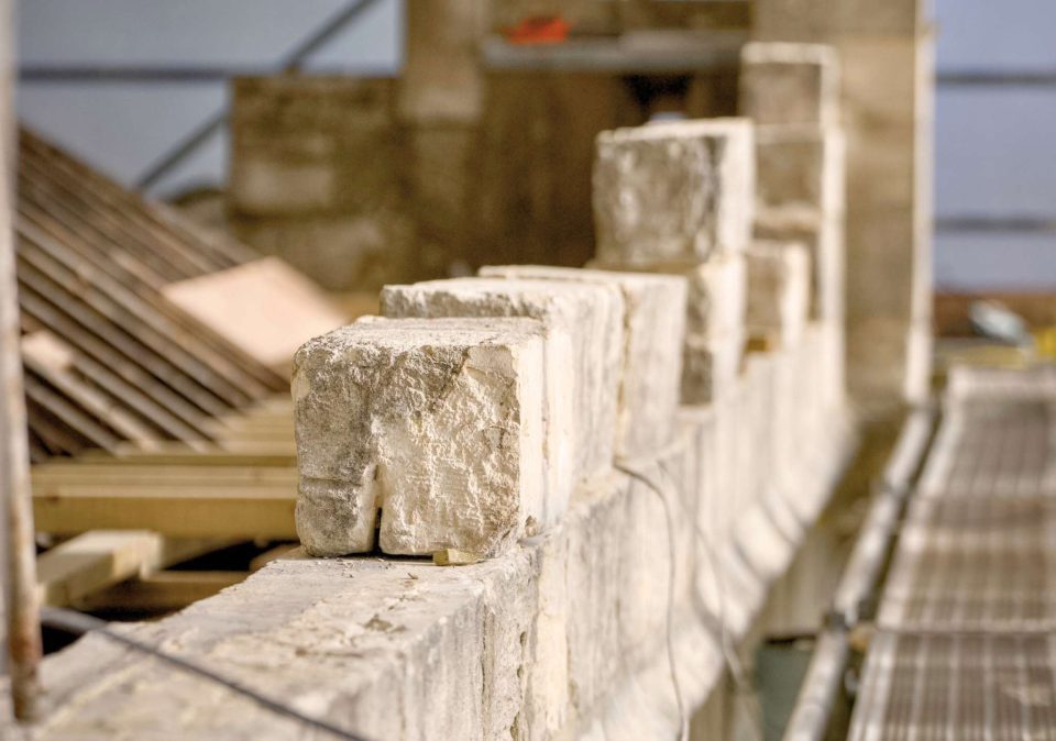• Removal and replacement of the castellated parapet.